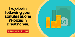I rejoice in following your statutes as one rejoices in great riches. (Psalm 119:14 NIV)